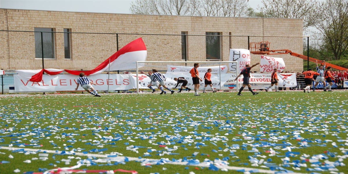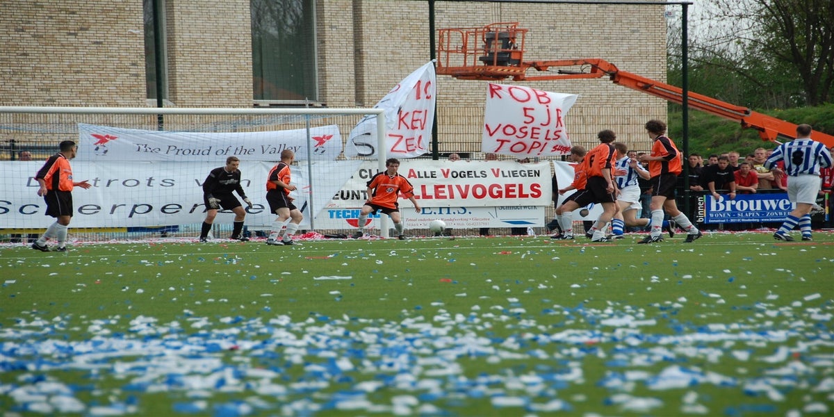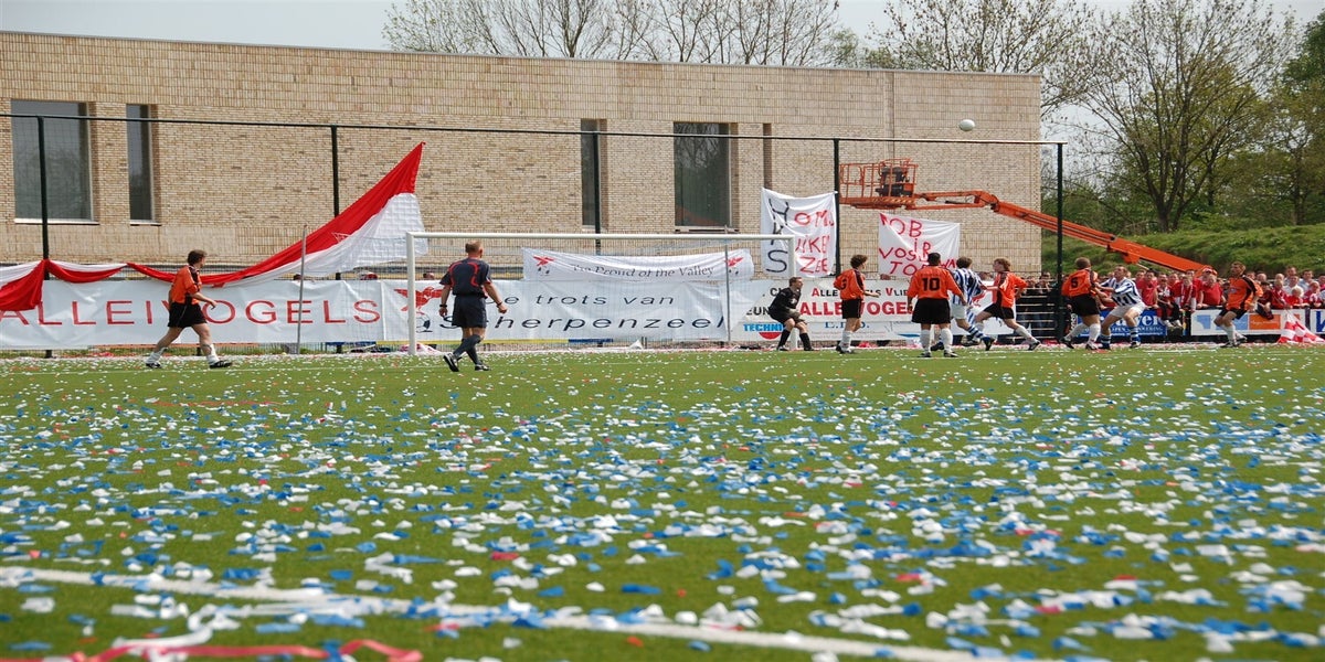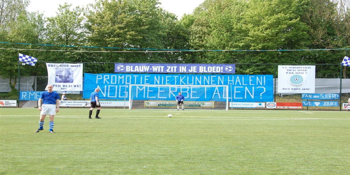 Het is 22 jaar geleden Scherpenzeel en Valleivogels de degens kruisten. Maar nu was het dan zover. De Blauwen trokken massaal naar de “overkant” voor de derby der derby’s. Het werd een enerverende pot voetbal, waarbij de blauwen aan het langste eind trokken.
