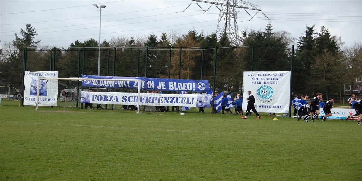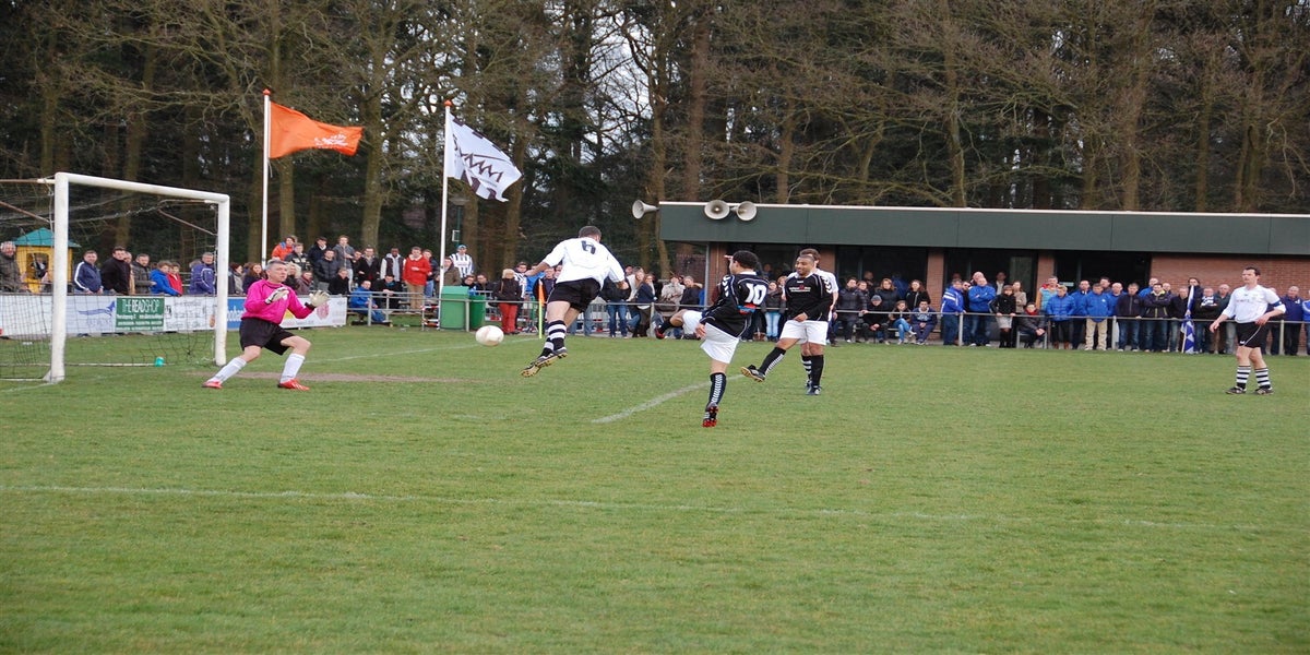 Scherpenzeel won de wedstrijd met 2-0 door goals van Mark van Baaren (strafschop) en Jouke van Elst.